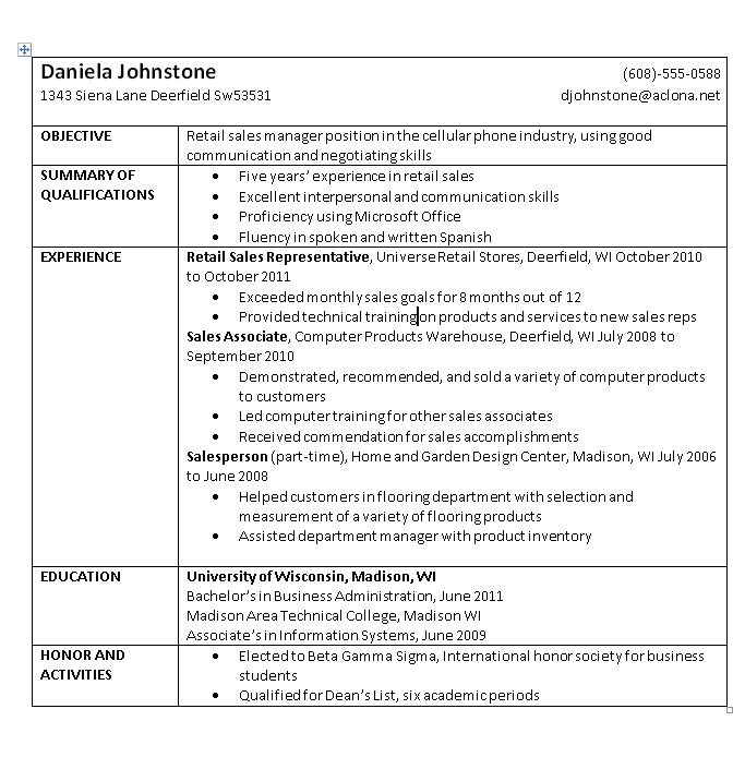 This is what my resume looks like before with the table.